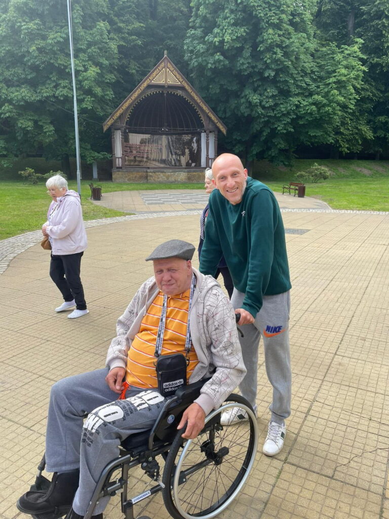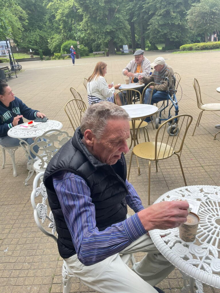 Nareszcie nastały słoneczne dni!!!!!! Dlatego postanowiliśmy wybrać się na spacer do Szczawna Zdroju – malowniczego uzdrowiska. Miejscowość znana jest z pięknych parków, leczniczych wód mineralnych i klimatu sprzyjającego wypoczynkowi. Humory dopisywały, zwłaszcza gdy każdy z nas skosztował przepysznej szarlotki i serniczka. Nam, Mieszkańcom towarzyszyła Ela – cudnej urody fizjoterapeutka, Marta – nasza ulubiona pani pokojowa i Damian – nasz nadworny piłkarz. Relaksowaliśmy się w cieniu drzew i cieszyliśmy się pięknem otaczającej przyrody.